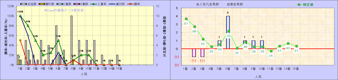 人気凡走馬:1-3番人気で着外、激走馬:5-18番人気で入着 |