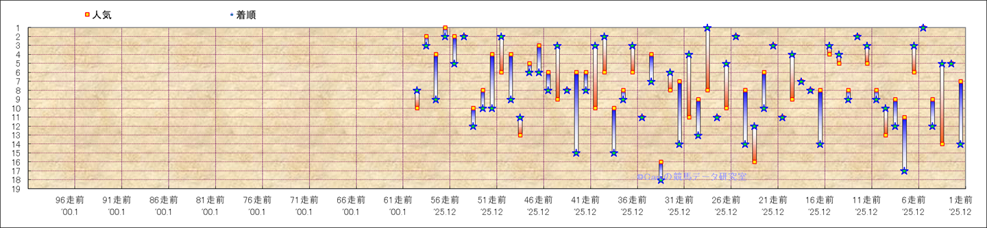 近100騎乗の人気と着順 |