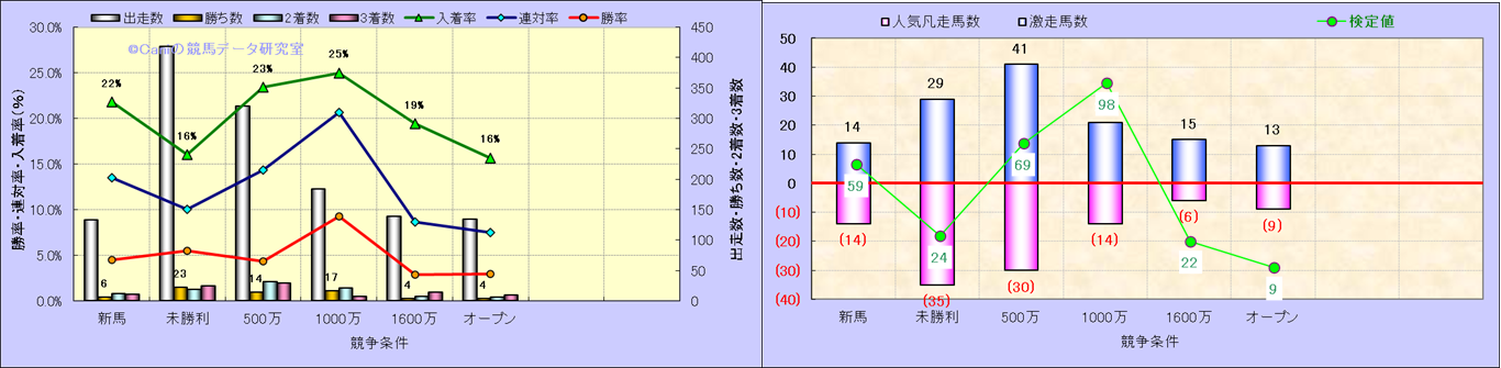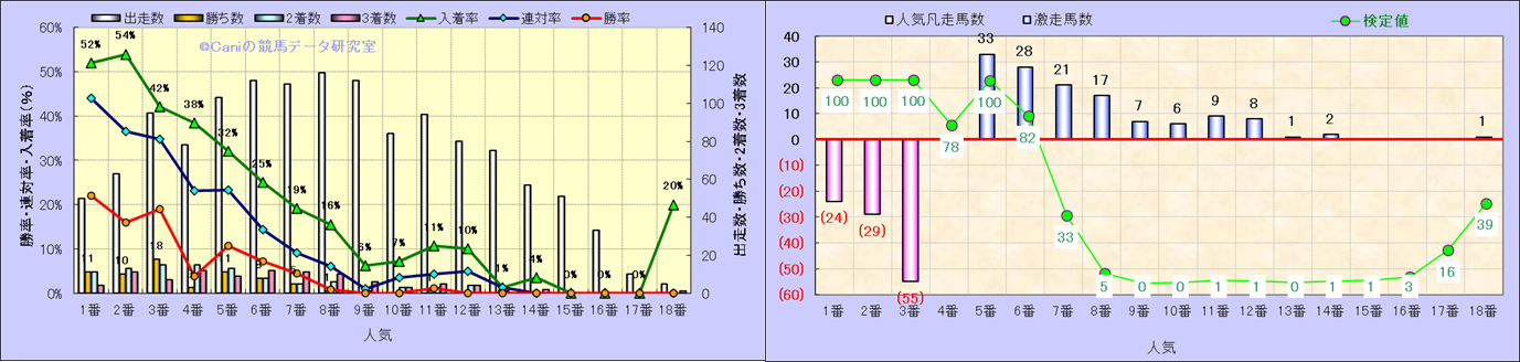 人気凡走馬:1-3番人気で着外、激走馬:5-18番人気で入着 |