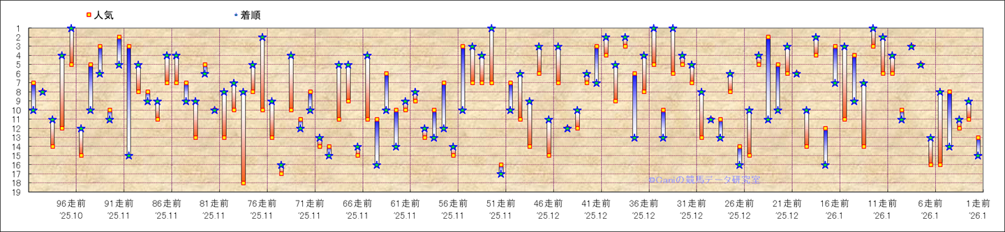 近100騎乗の人気と着順 |