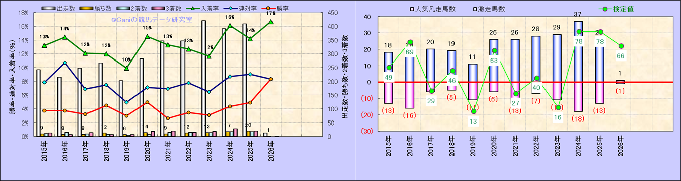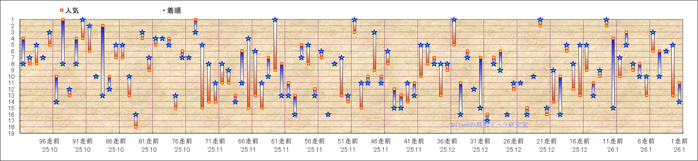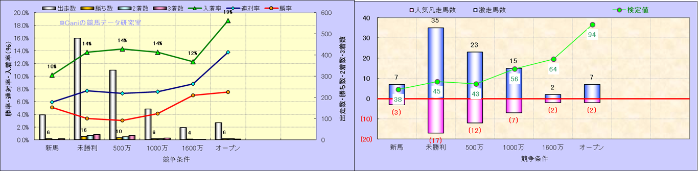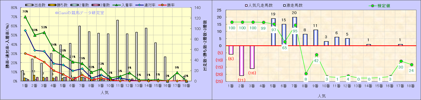 人気凡走馬:1-3番人気で着外、激走馬:5-18番人気で入着 |