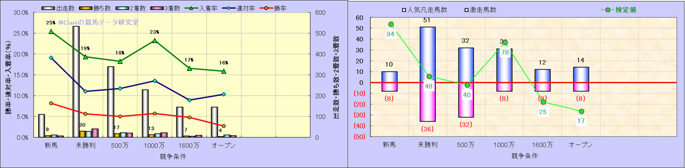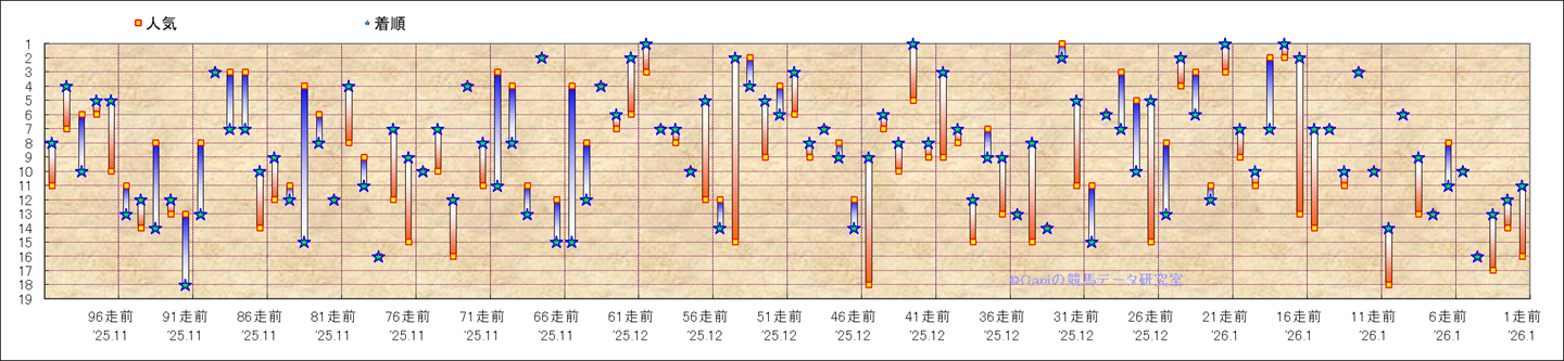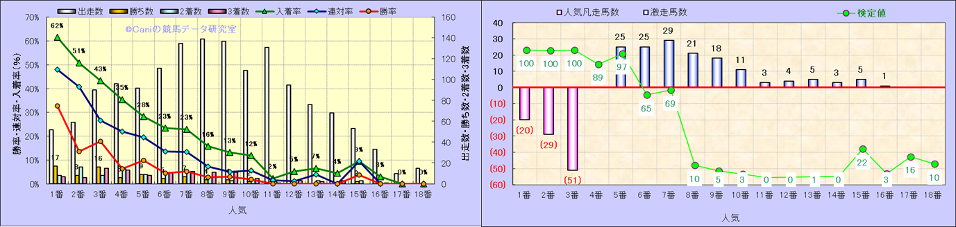 人気凡走馬:1-3番人気で着外、激走馬:5-18番人気で入着 |