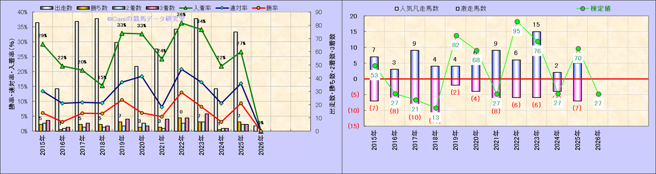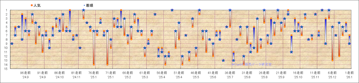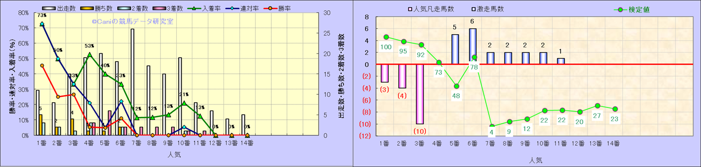 人気凡走馬:1-3番人気で着外、激走馬:5-18番人気で入着 |
