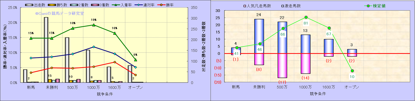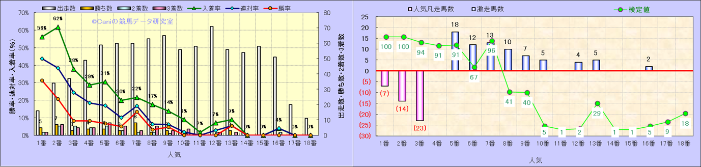 人気凡走馬:1-3番人気で着外、激走馬:5-18番人気で入着 |