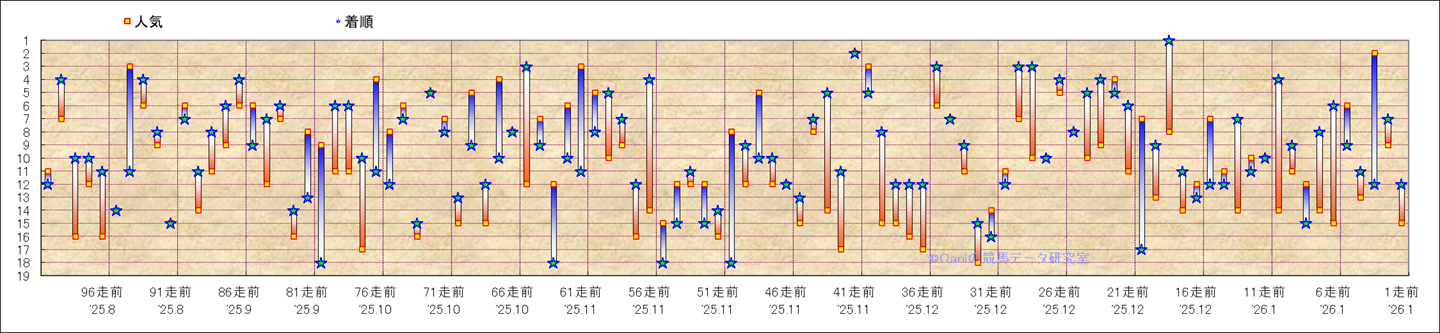 近100騎乗の人気と着順 |