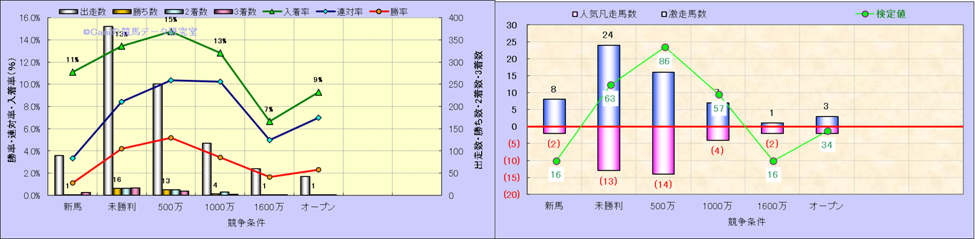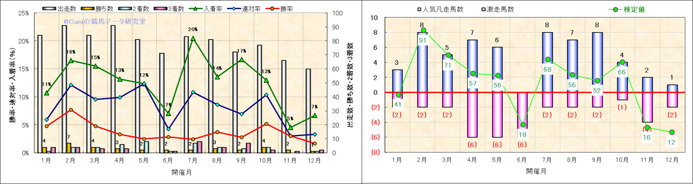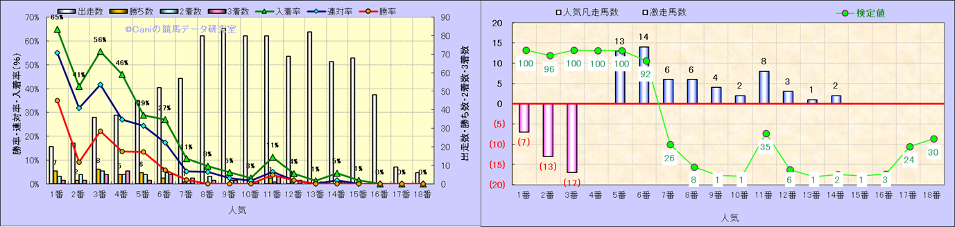 人気凡走馬:1-3番人気で着外、激走馬:5-18番人気で入着 |