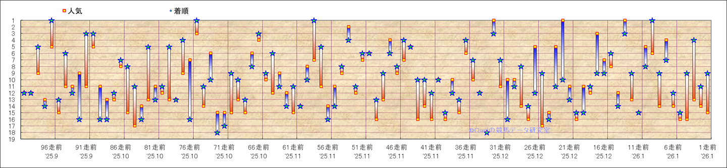 近100騎乗の人気と着順 |