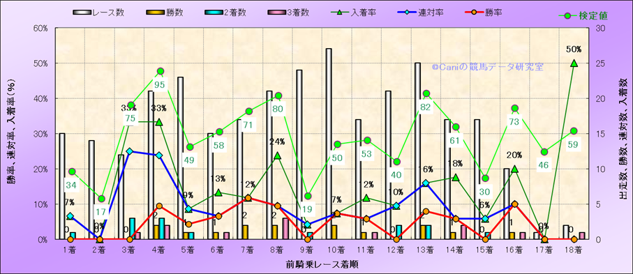 前騎乗レース着順別成績(近300騎乗) |