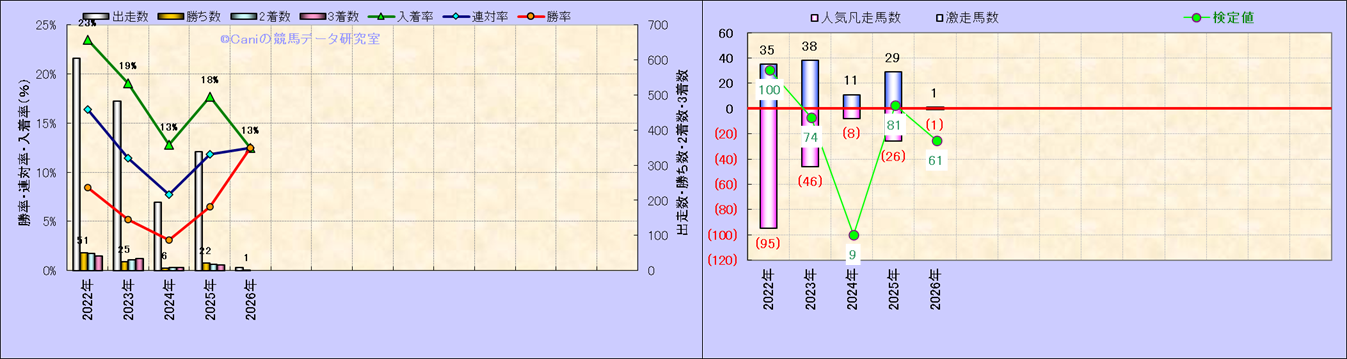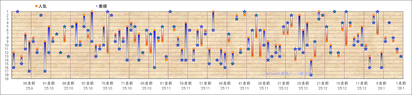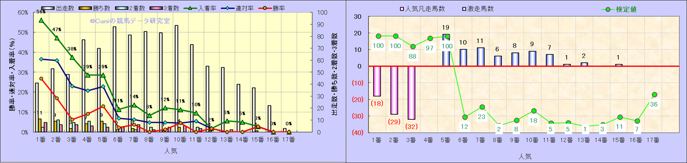 人気凡走馬:1-3番人気で着外、激走馬:5-18番人気で入着 |