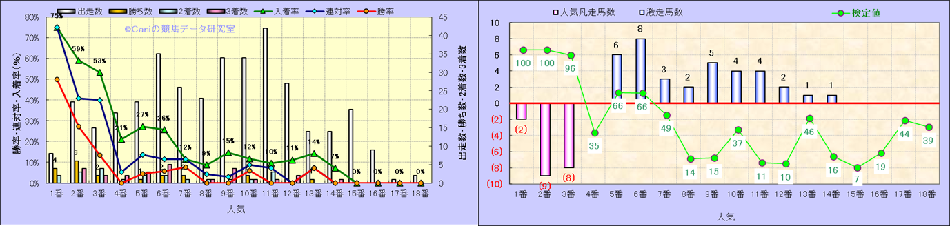 人気凡走馬:1-3番人気で着外、激走馬:5-18番人気で入着 |
