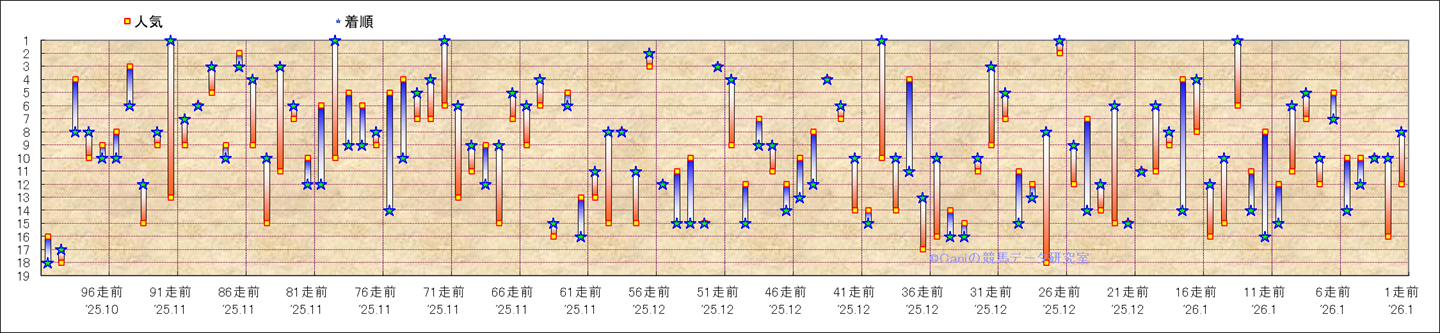 近100騎乗の人気と着順 |