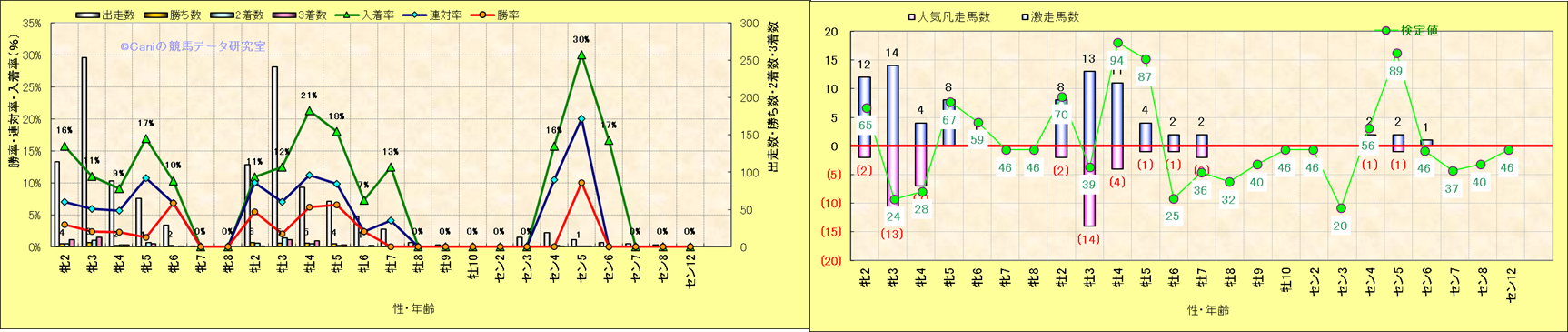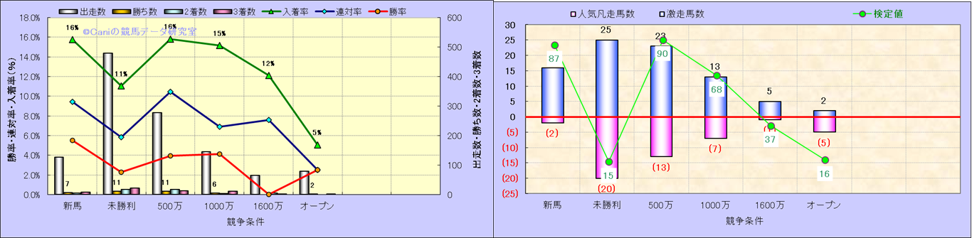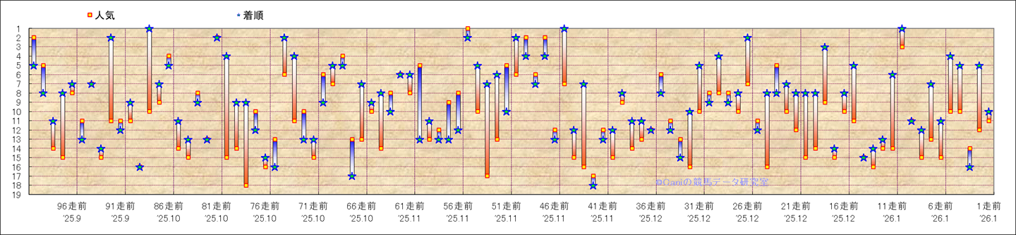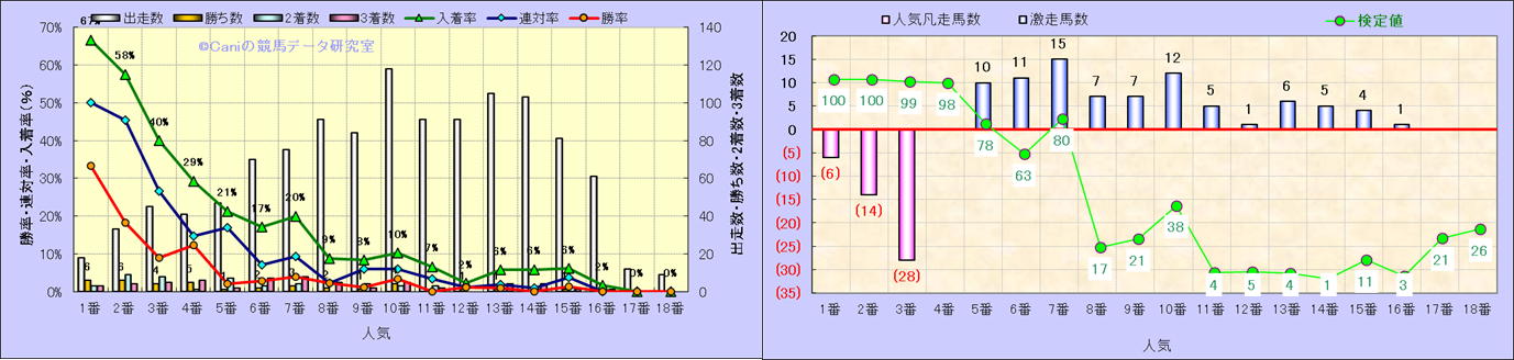 人気凡走馬:1-3番人気で着外、激走馬:5-18番人気で入着 |