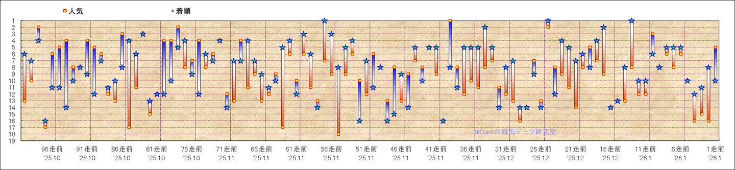 人気凡走馬:1-3番人気で着外、激走馬:5-18番人気で入着 |