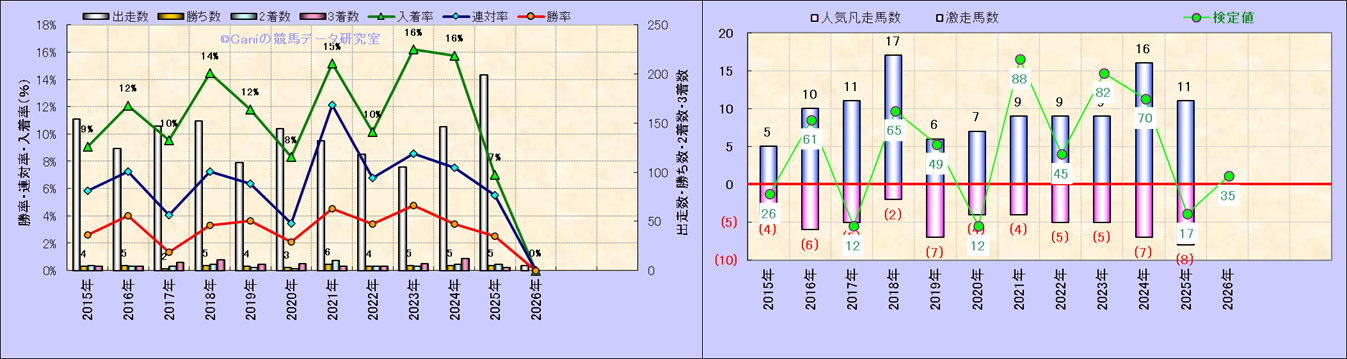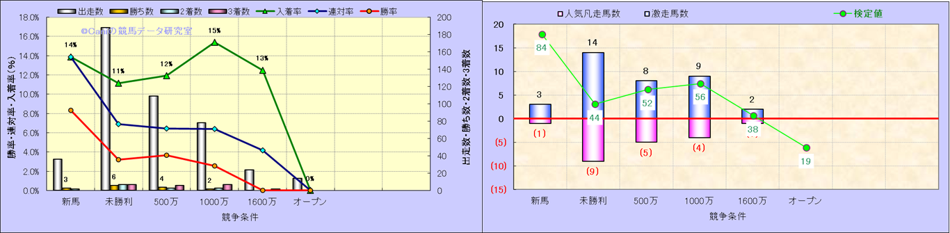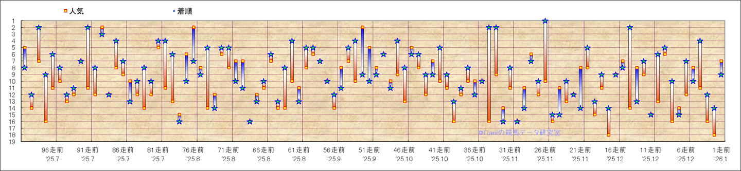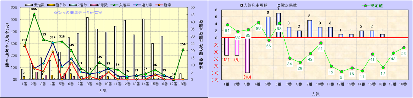 人気凡走馬:1-3番人気で着外、激走馬:5-18番人気で入着 |