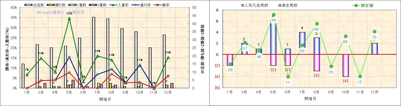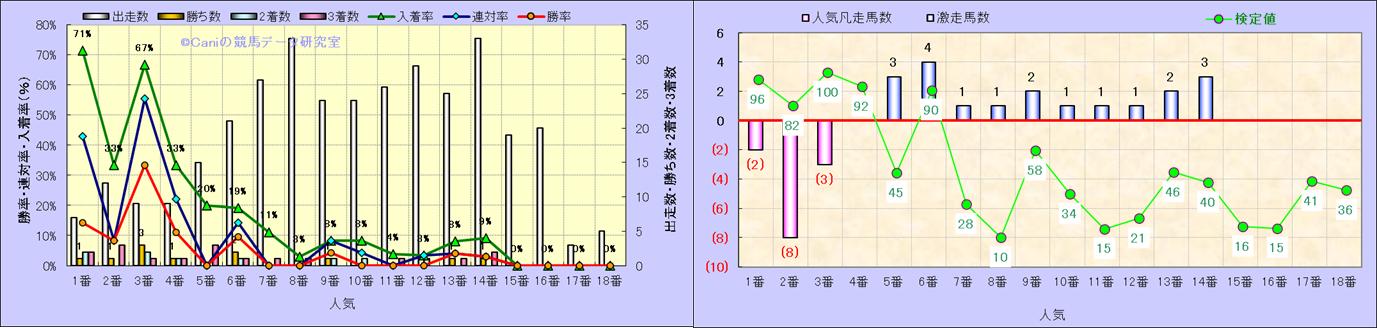 人気凡走馬:1-3番人気で着外、激走馬:5-18番人気で入着 |