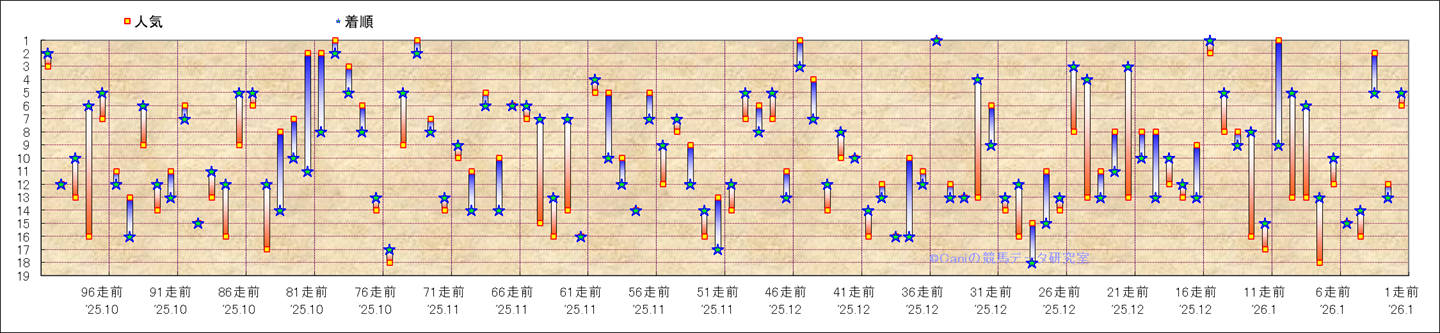 近100騎乗の人気と着順 |