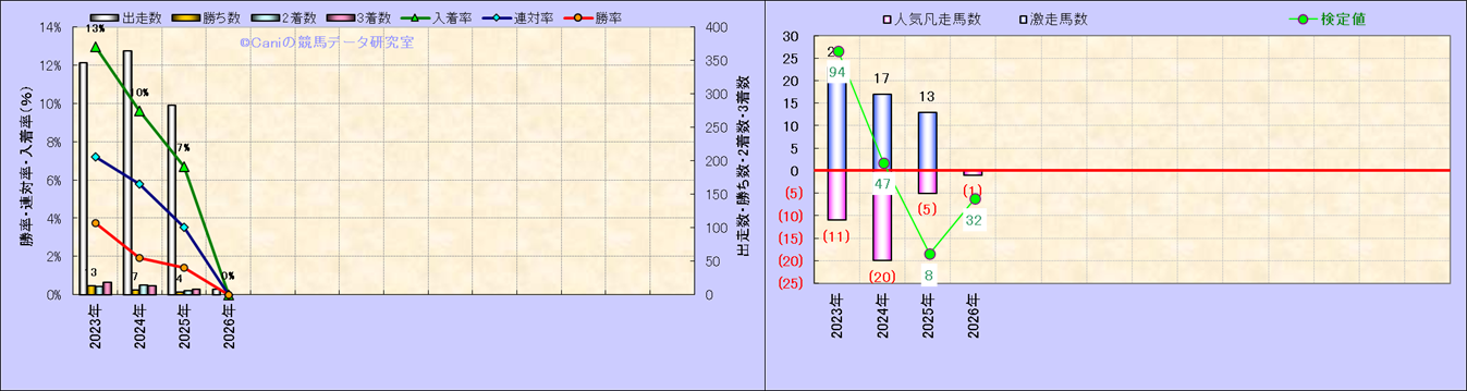 人気凡走馬:1-3番人気で着外、激走馬:5-18番人気で入着 |