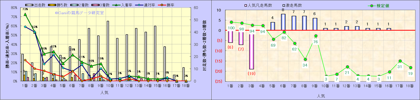 人気凡走馬:1-3番人気で着外、激走馬:5-18番人気で入着 |
