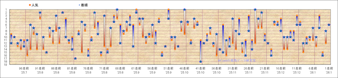 近100騎乗の人気と着順 |
