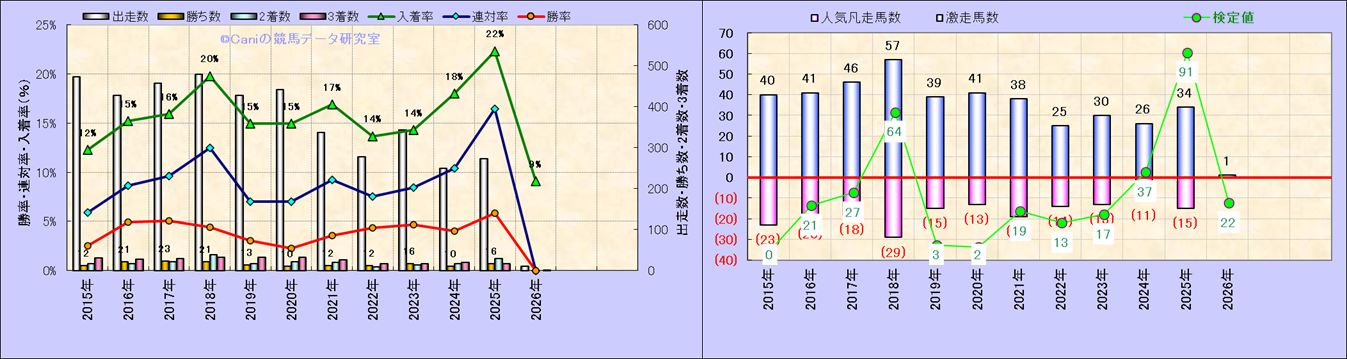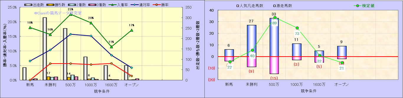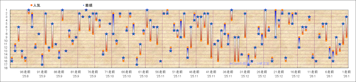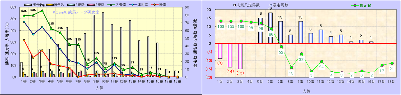 人気凡走馬:1-3番人気で着外、激走馬:5-18番人気で入着 |