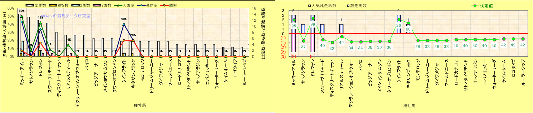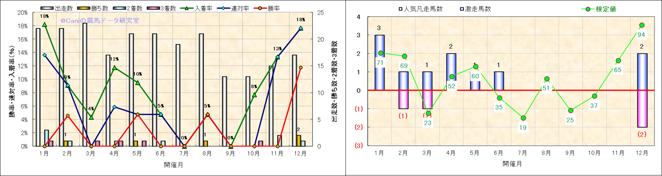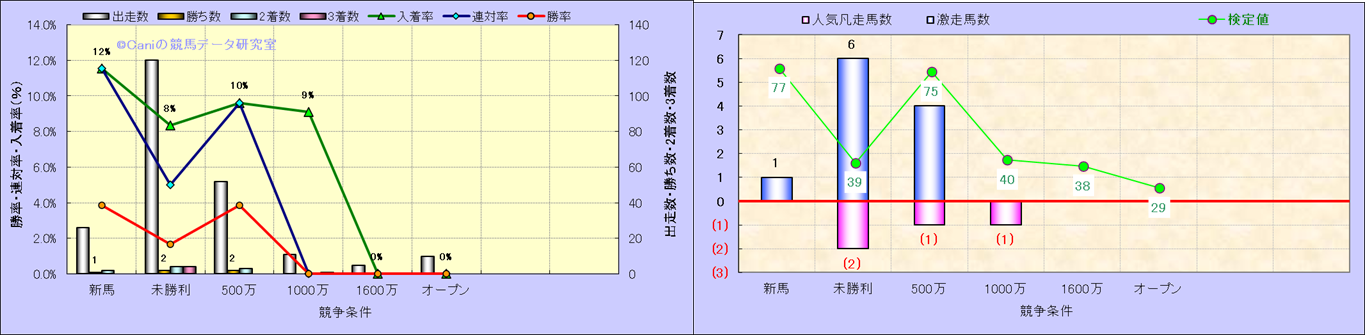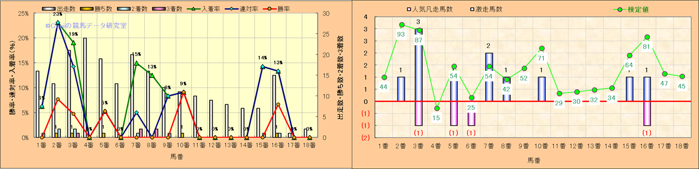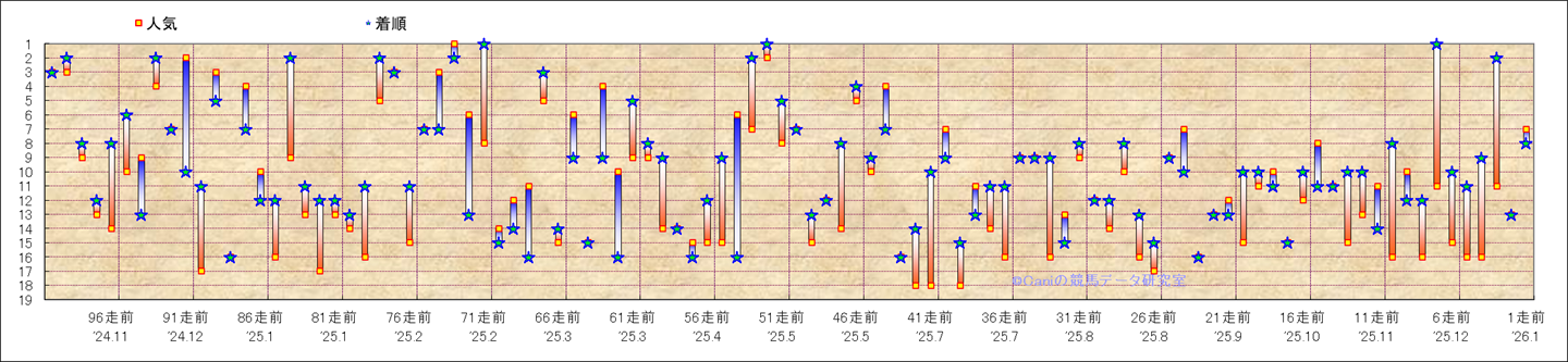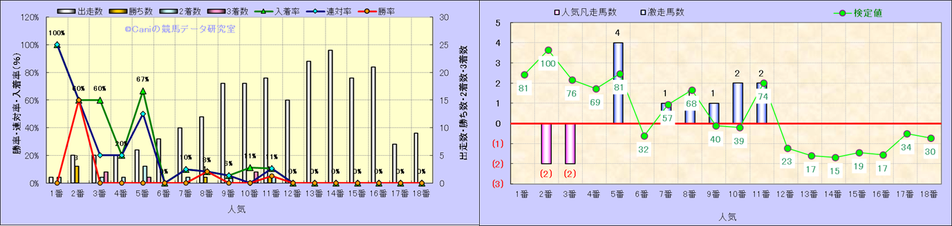 人気凡走馬:1-3番人気で着外、激走馬:5-18番人気で入着 |