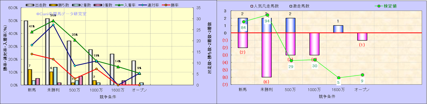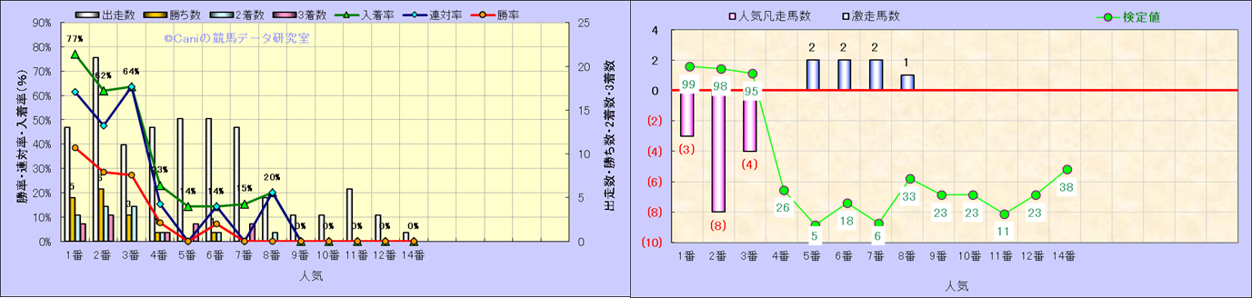 人気凡走馬:1-3番人気で着外、激走馬:5-18番人気で入着 |