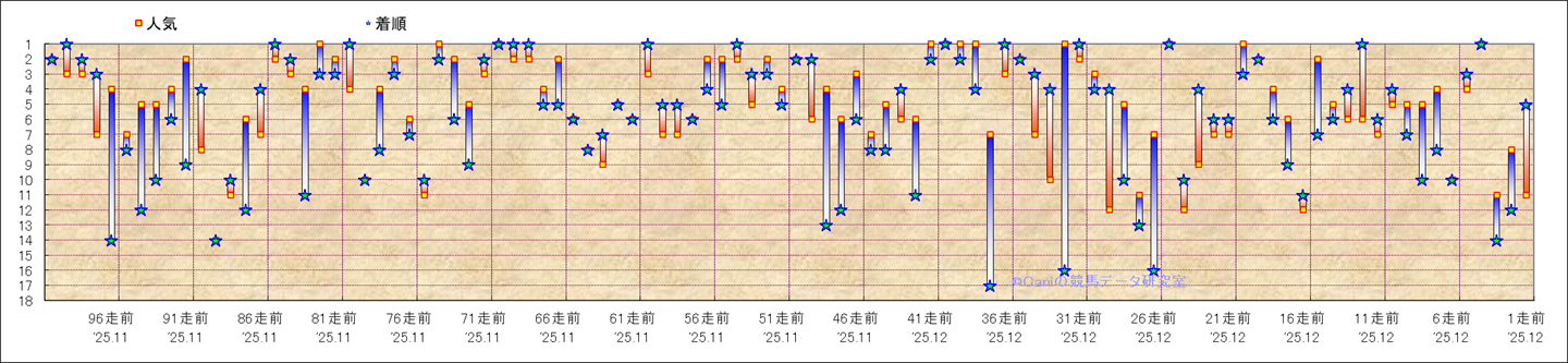 近100騎乗の人気と着順 |