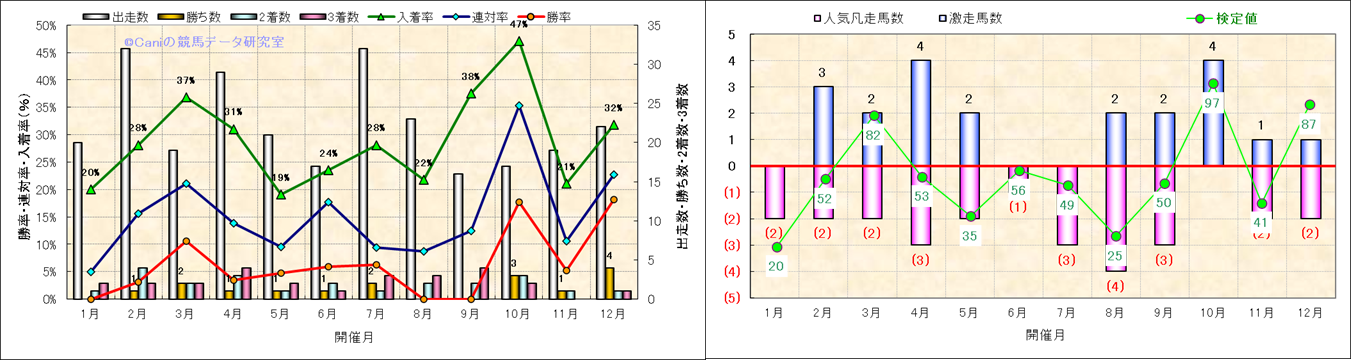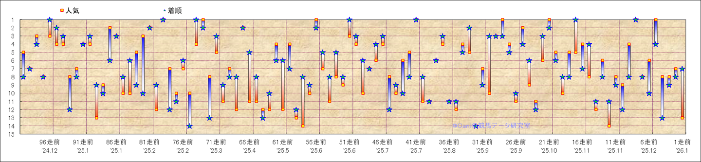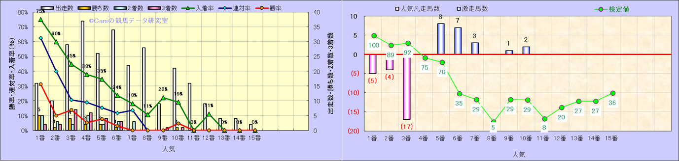 人気凡走馬:1-3番人気で着外、激走馬:5-18番人気で入着 |