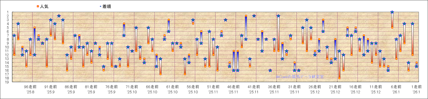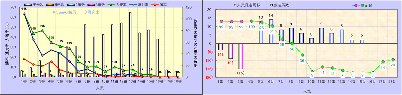 人気凡走馬:1-3番人気で着外、激走馬:5-18番人気で入着 |