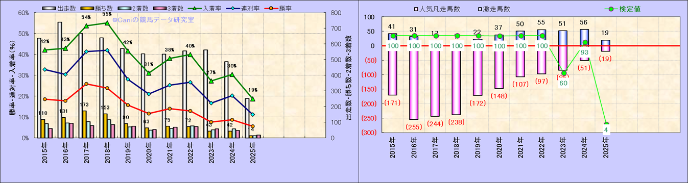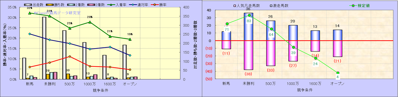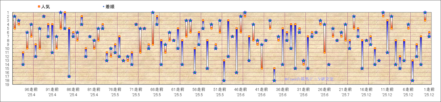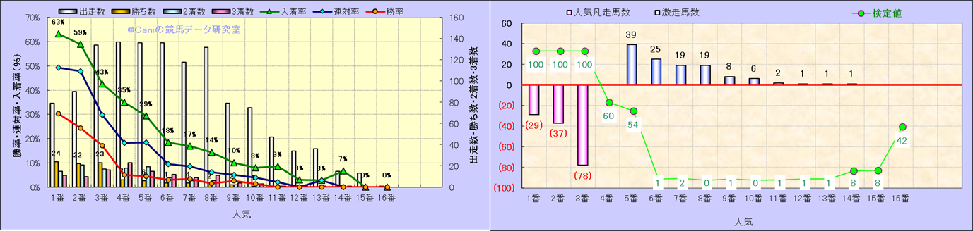 人気凡走馬:1-3番人気で着外、激走馬:5-18番人気で入着 |