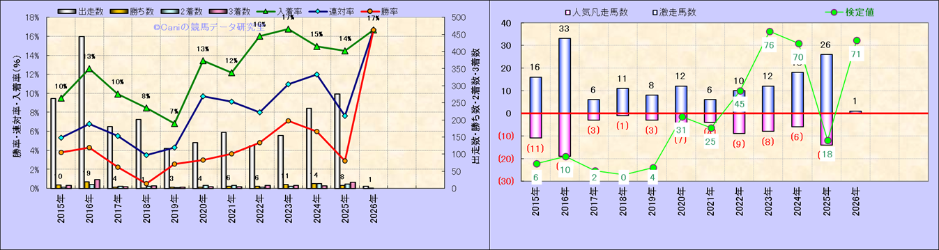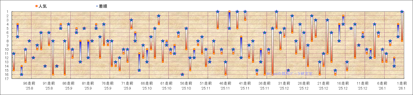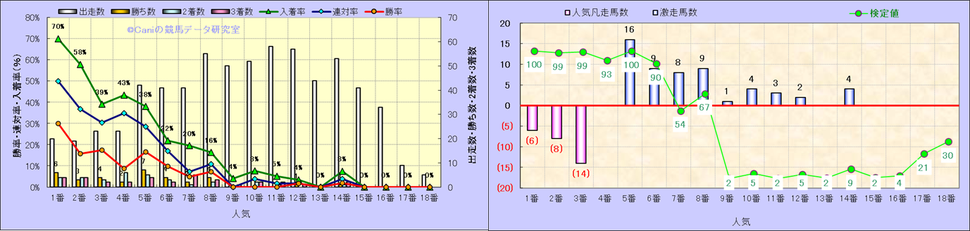 人気凡走馬:1-3番人気で着外、激走馬:5-18番人気で入着 |