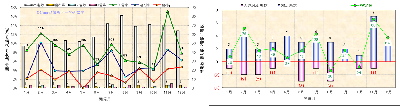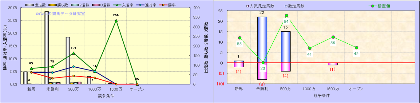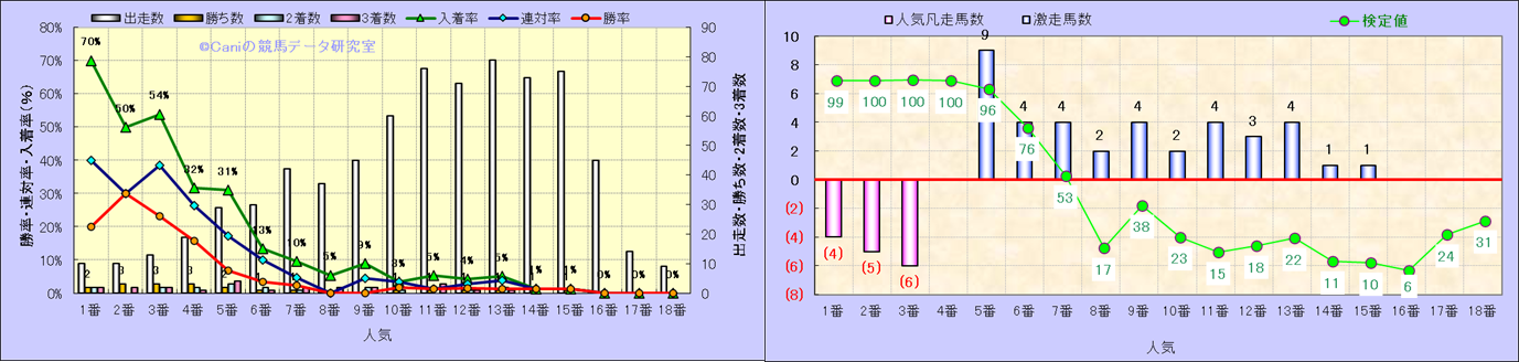 人気凡走馬:1-3番人気で着外、激走馬:5-18番人気で入着 |