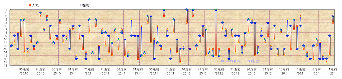 近100騎乗の人気と着順 |