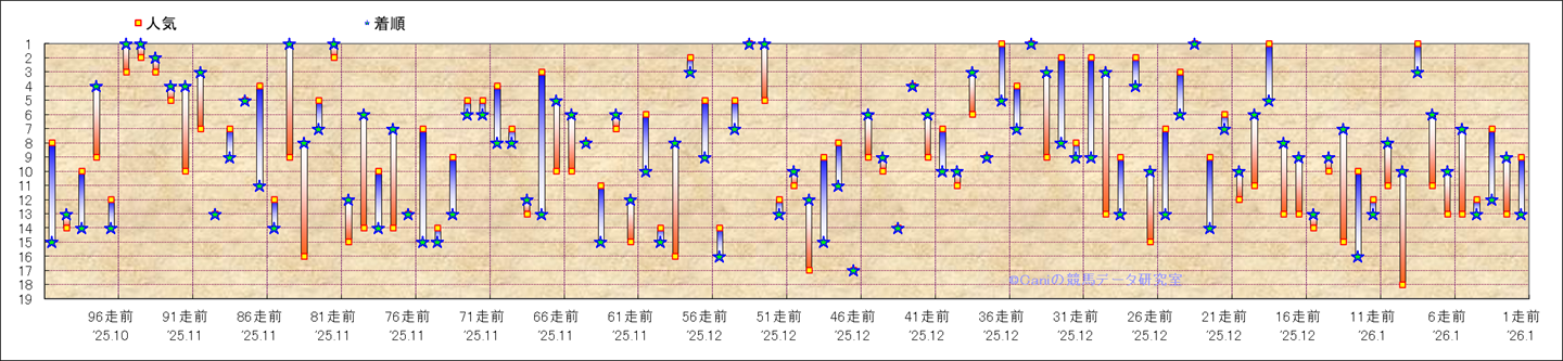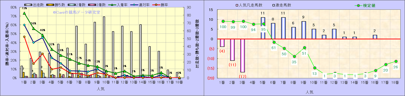 人気凡走馬:1-3番人気で着外、激走馬:5-18番人気で入着 |