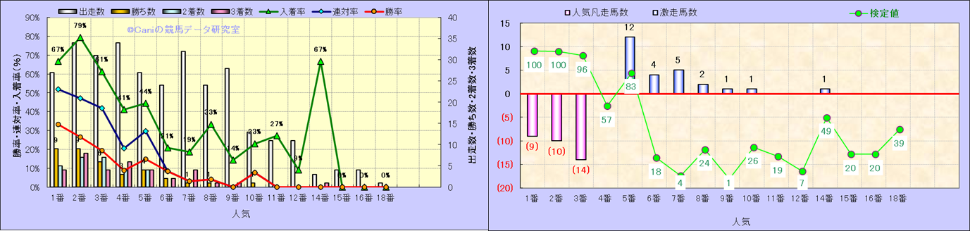 人気凡走馬:1-3番人気で着外、激走馬:5-18番人気で入着 |