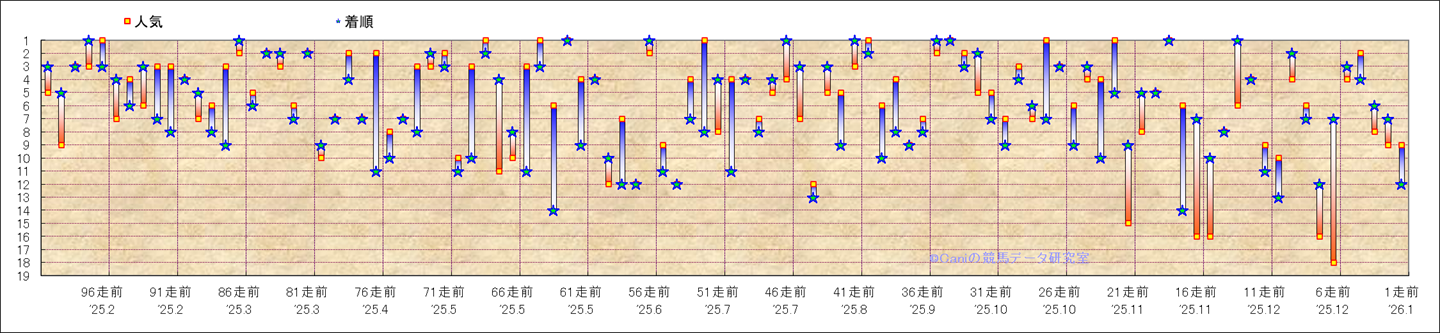 近100騎乗の人気と着順 |