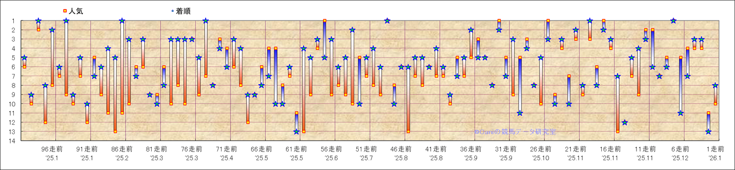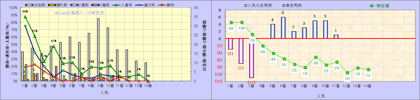 人気凡走馬:1-3番人気で着外、激走馬:5-18番人気で入着 |