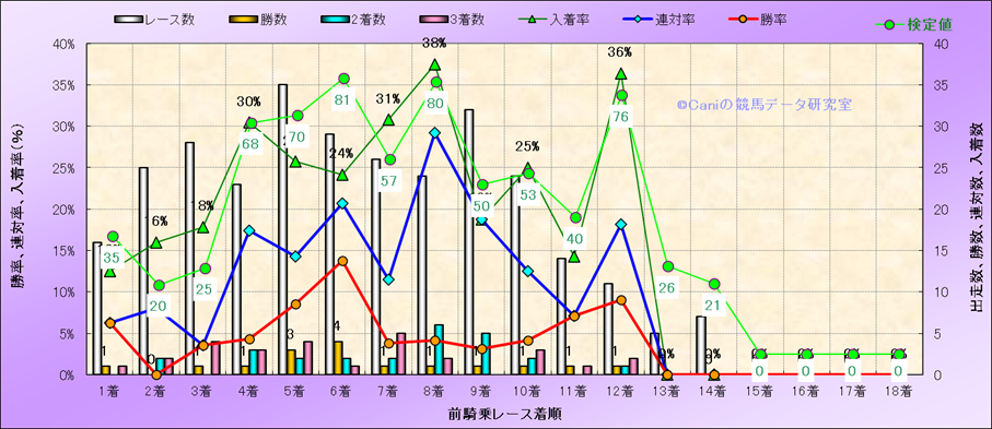 同一レースで、前走騎乗馬と競った場合の、その馬に対する先着率(乗り替わり騎手別、近3年) |