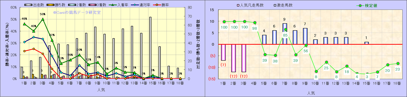人気凡走馬:1-3番人気で着外、激走馬:5-18番人気で入着 |