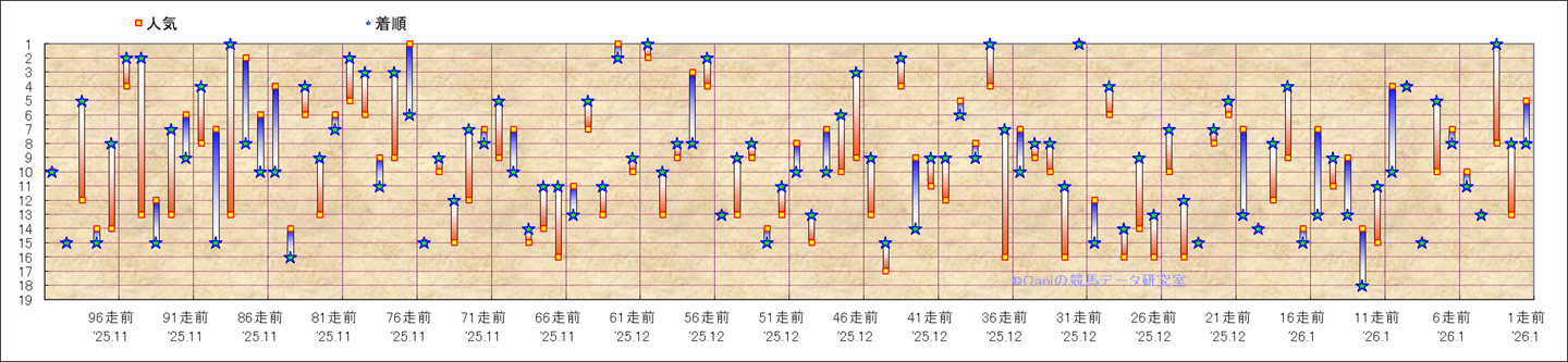 近100騎乗の人気と着順 |