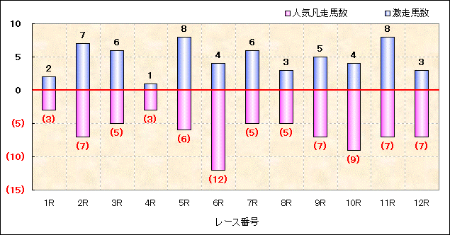 人気凡走馬:1-3番人気で着外、激走馬:5-18番人気で入着 |