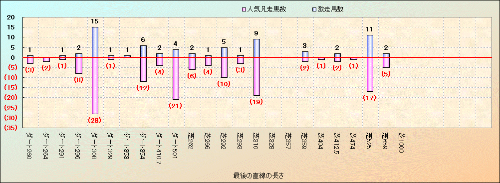 人気凡走馬:1-3番人気で着外、激走馬:5-18番人気で入着 |