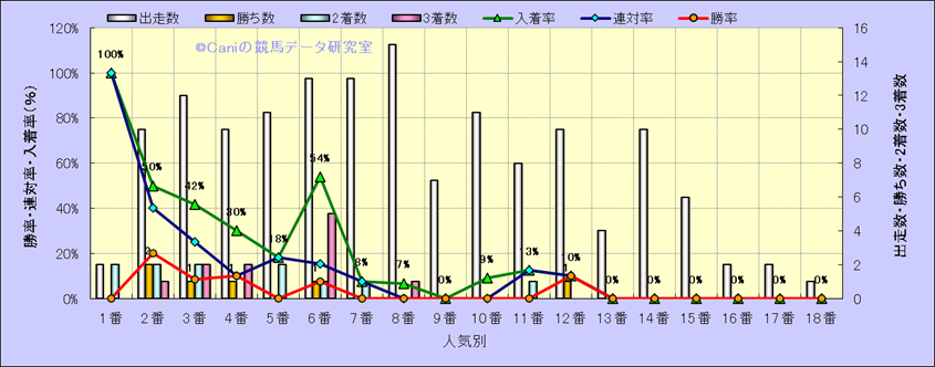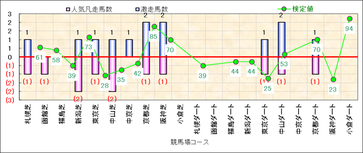 人気凡走馬:1-3番人気で着外、激走馬:5-18番人気で入着 |