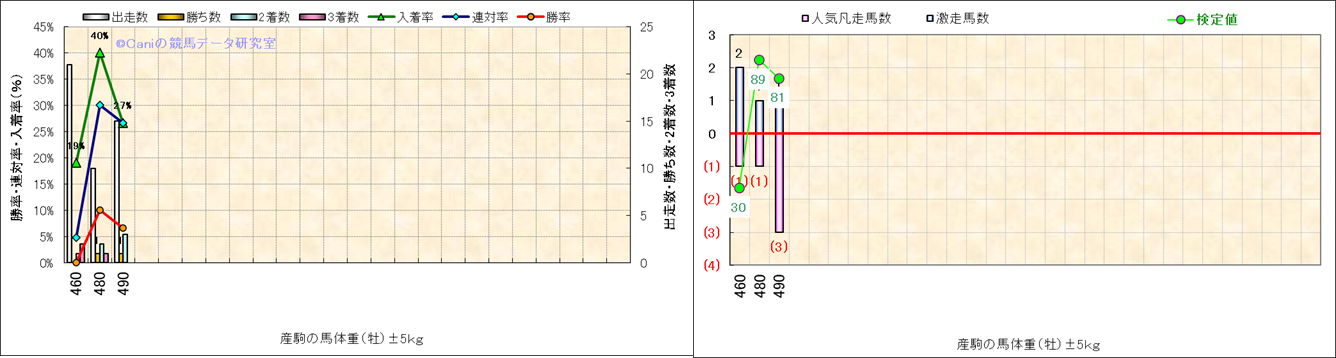 牡産駒の体重別成績-近3年- |