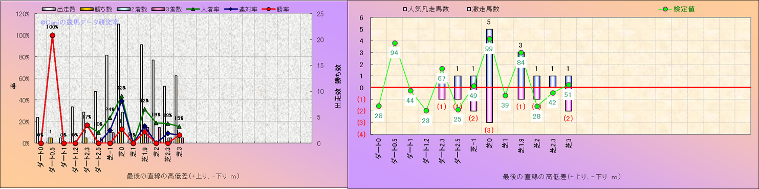 コース、最後の直線の高低差別解析(平地)-近3年- |
