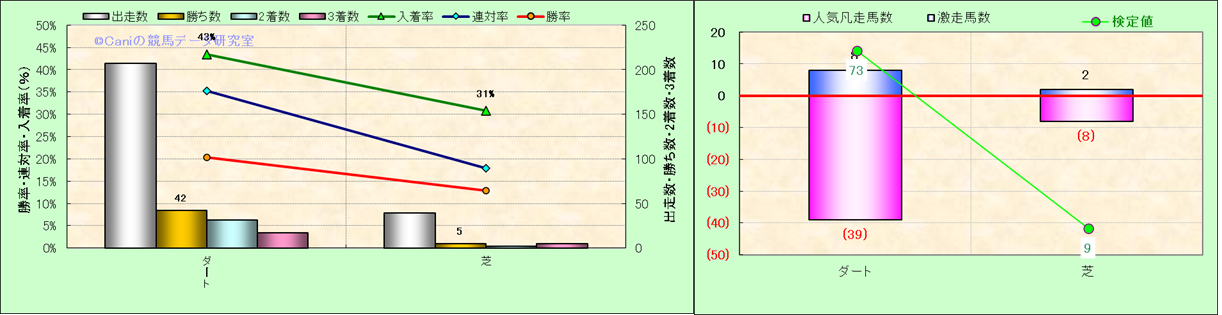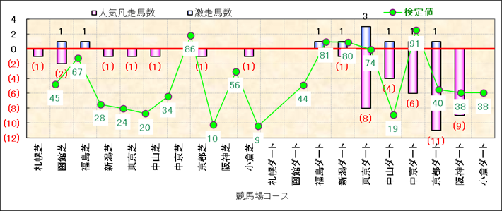 人気凡走馬:1-3番人気で着外、激走馬:5-18番人気で入着 |