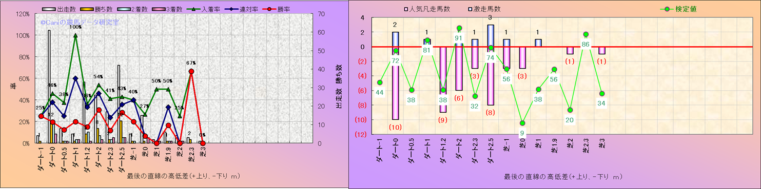 コース、最後の直線の高低差別解析(平地)-近3年- |