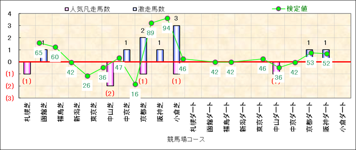 人気凡走馬:1-3番人気で着外、激走馬:5-18番人気で入着 |