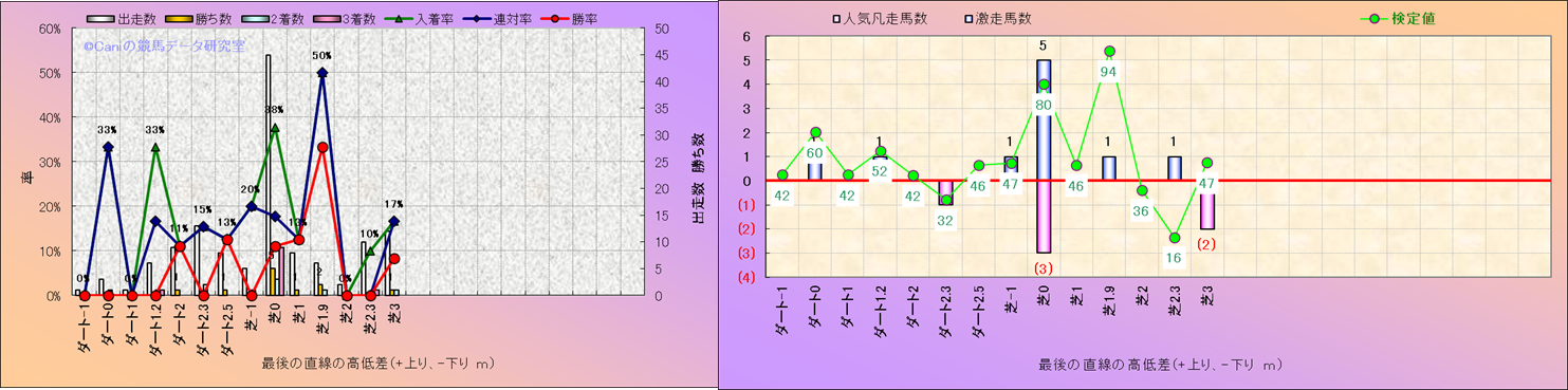 コース、最後の直線の高低差別解析(平地)-近3年- |