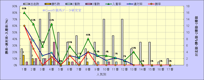 人気凡走馬:1-3番人気で着外、激走馬:5-18番人気で入着 |